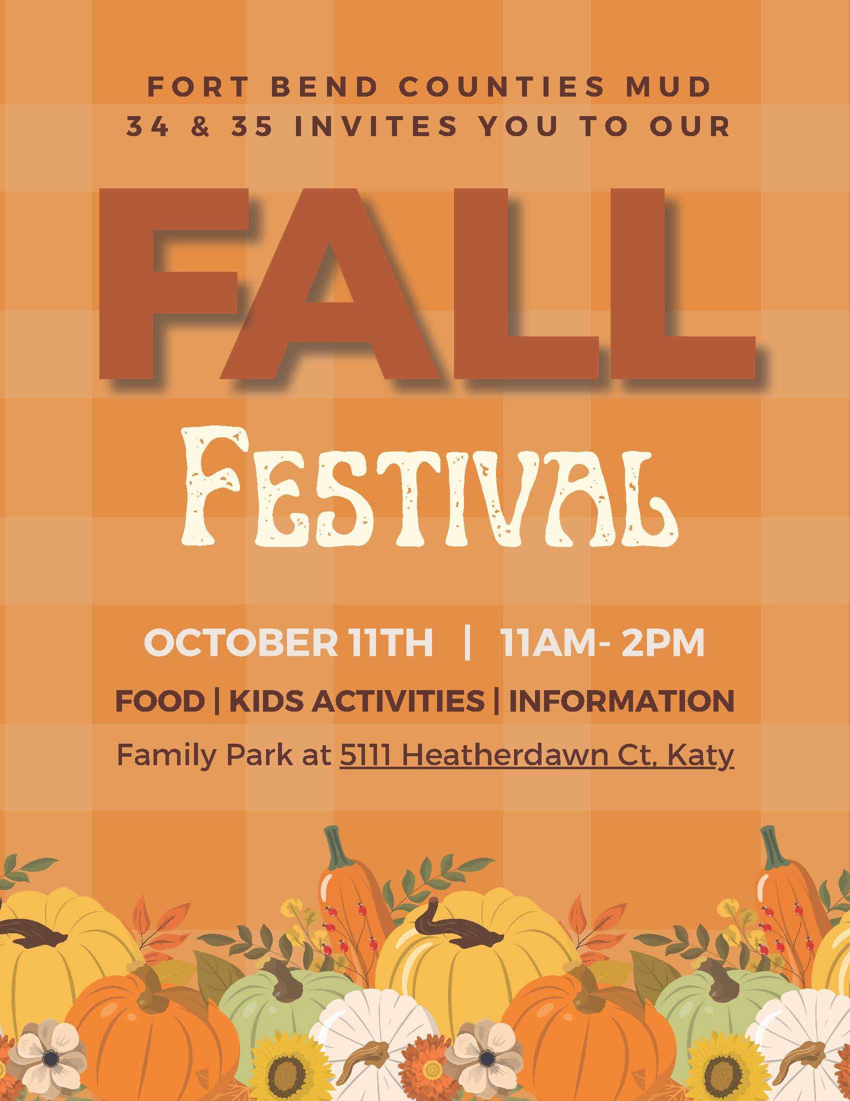 Residents are invited to a fun and festive Fall Festival hosted by Fort Bend Counties MUD 34 & 35!